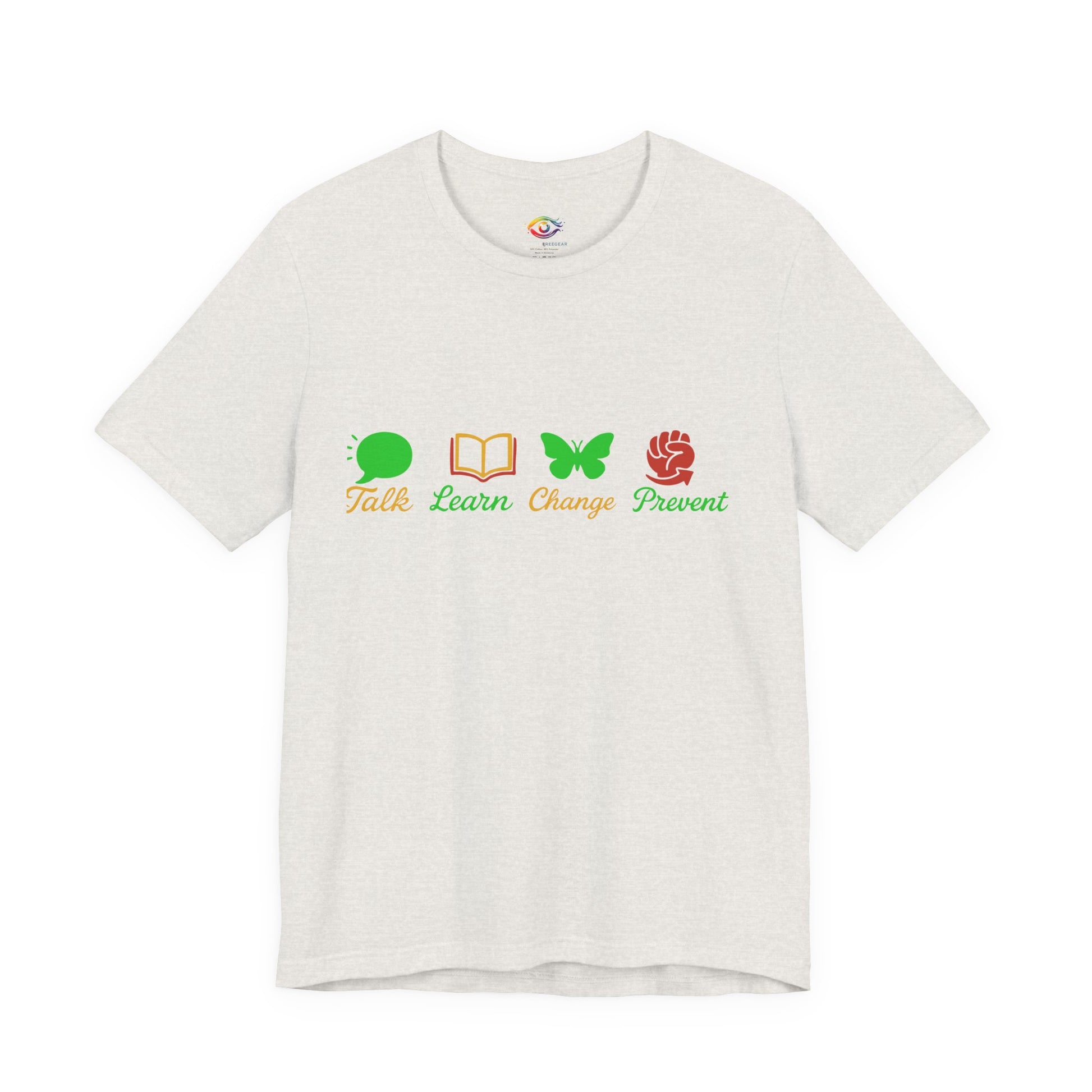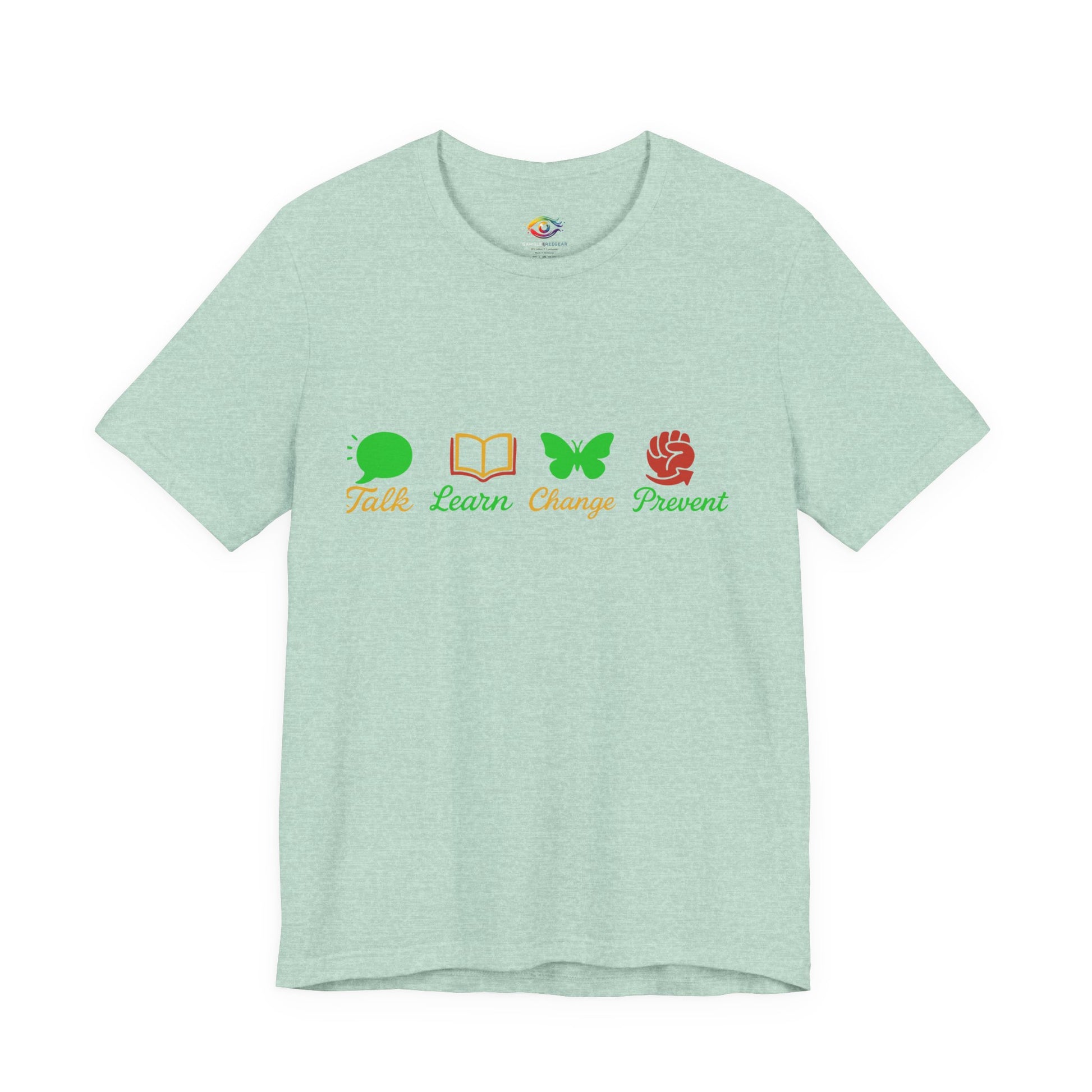 Talk Learn Change Prevent Gambling Addiction Recovery T-Shirt – red–black–green tricoloDesign by GambleFreeGear”
