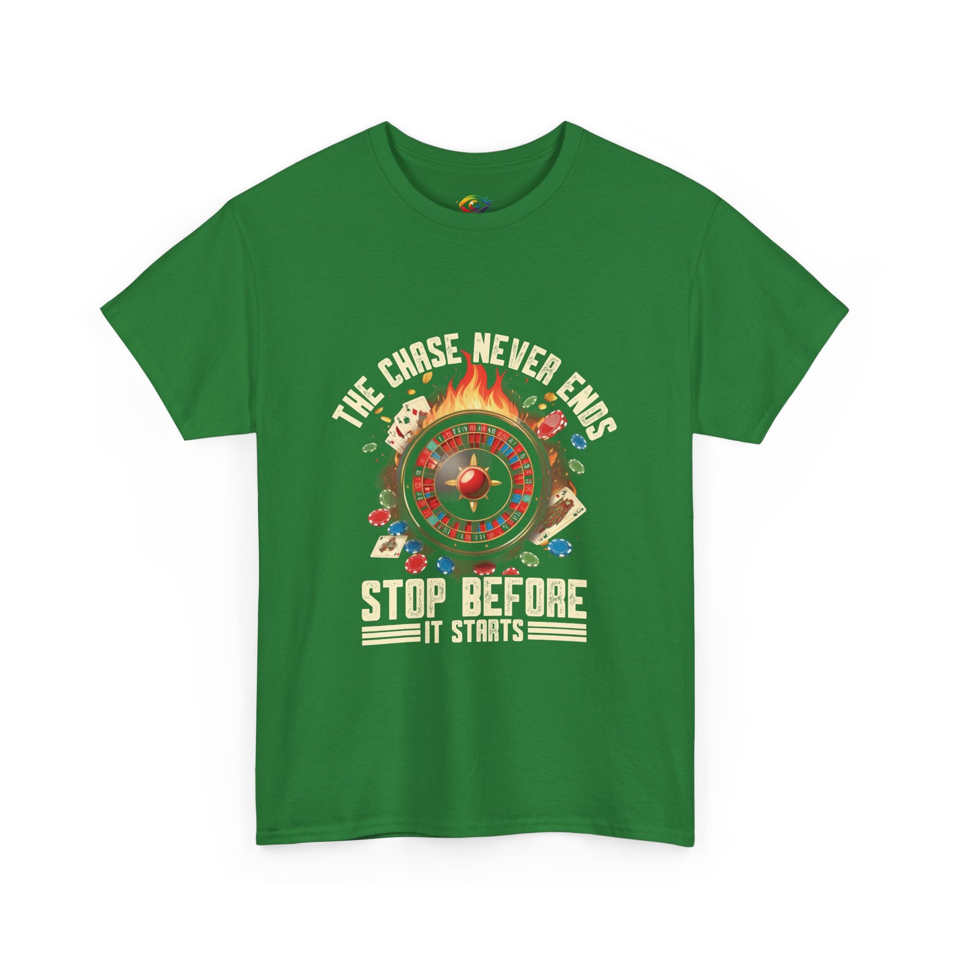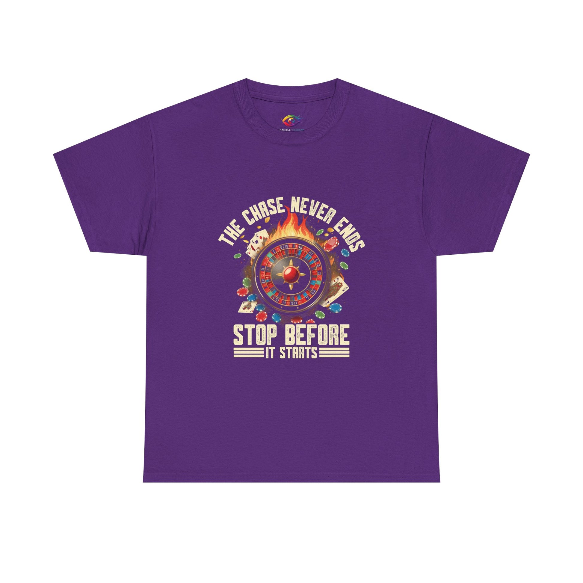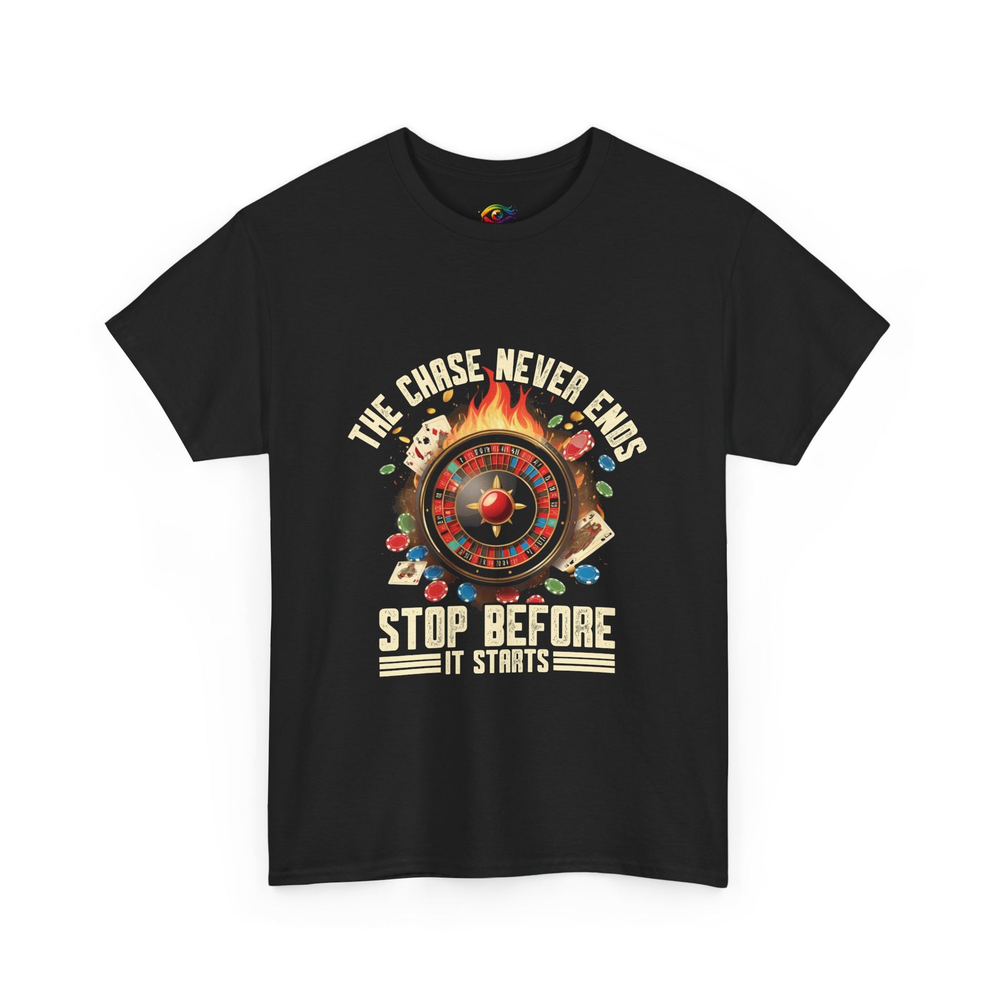 The Chase Never Ends. Stop Before It Starts” – Anti-Gambling Awareness T-Shirt
